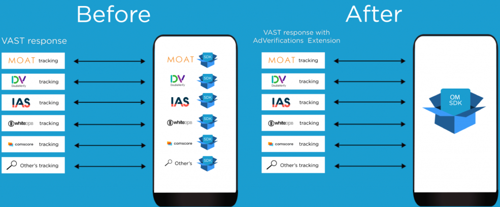 OM SDK – the Open Measurement Software Development Kit (OM SDK) eliminates the requirement for app developers to implement various SDKs in order to enable measurement core measurement insights across display, native and video by incorporating a number of vendor solutions within one SDK.