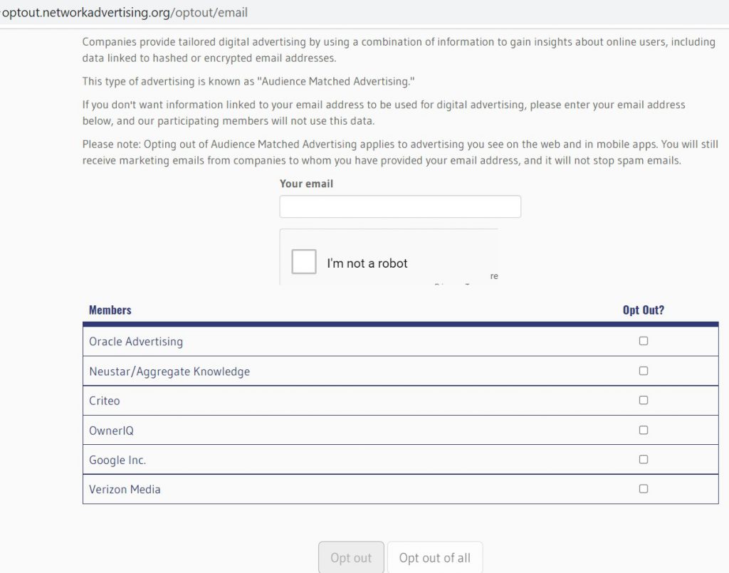 Recently the not-for-profit US-based self-regulatory association called the Network Advertising Initiative (NAI) has released a new way for consumers to opt-out from ad targeting and tracking that uses email matching. This will requires member companies (which includes the likes of Google, Oracle, Criteo and Verizon Media) to provide an opt-out from any services using hashed or encrypted emails as the links between a brand’s customer data and identity graphs and other audience matching systems.