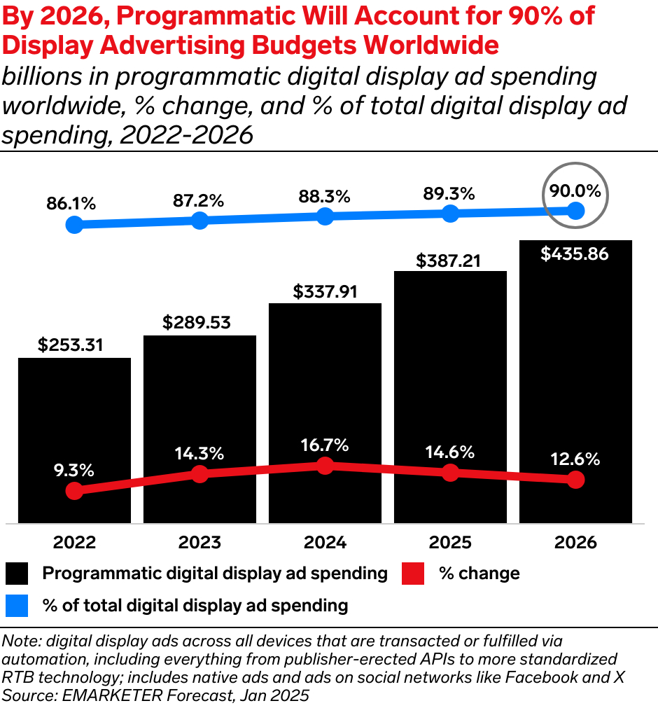 In fact for good old display forecasts for 2026 are now at 90% of global budgets according to EMARKETER (see below). Australia’s percentage is slightly different as we still see a fair amount of IO-based buying (to review local revenue trends click here).