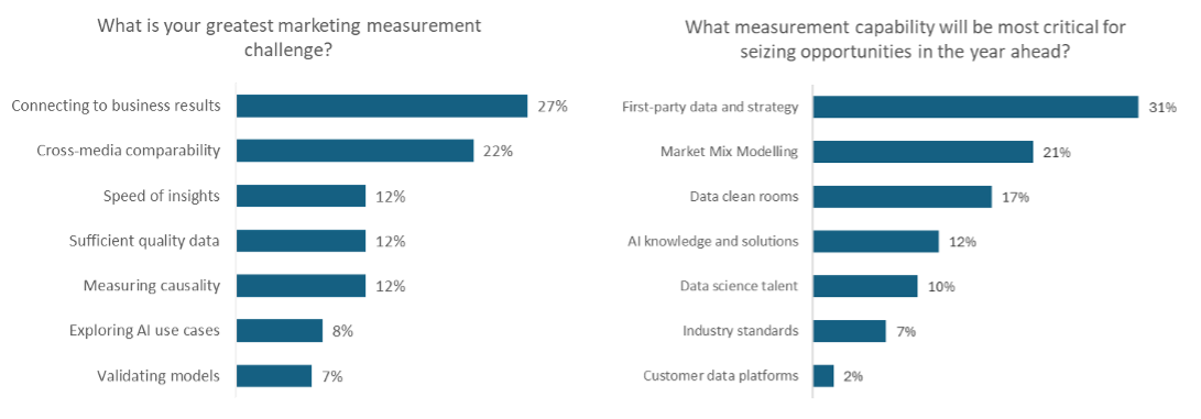 Cint sponsored our MeasureUp audience polls conducted during the event and these revealed that having measurement in place that connects to understanding business results is one of the biggest current challenges. First-party data, Market Mix Modelling and data clean rooms were also thought to be amongst the most important measurement capabilities needed for seizing opportunities in the year ahead according to our MeasureUp audience.